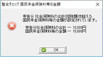 [年末調整先行入力]で「整合チェック 国民年金保険料等の金額」のメッセージが表示されます。