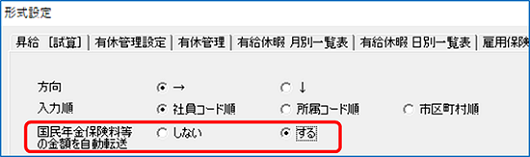 F6[形式]の「国民年金保険料等の金額を自動転送」で「する」を選択すると、「内国民年金等」に入力した