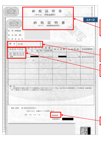 ─「●●税務署長」など、税務署で発行されたものを添付してください - 税目は「法人税」になっていますか?