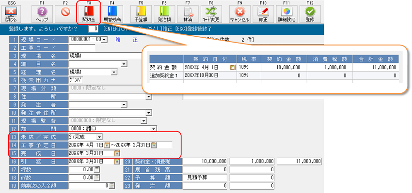 2回目以降の[年次繰越]を行いましたが、[プロジェクト登録]の仕掛/完成、完成日、予定期間、契約金が更新されていません。