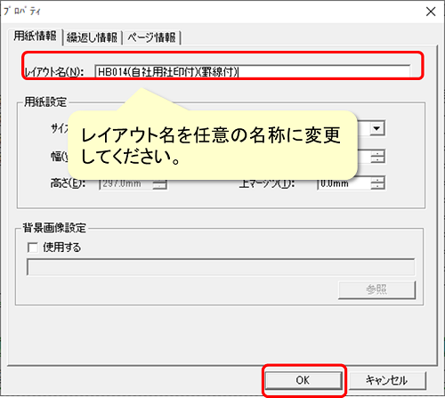 プロパティ画面が表示されます。レイアウト名を設定し[OK]で閉じてください。