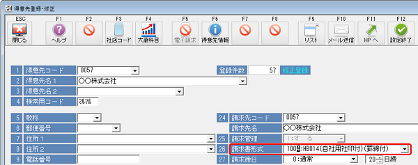 「スマート大臣〈電子請求〉」で請求書を配信する得意先は請求書形式を作成したものに切り替えてください。