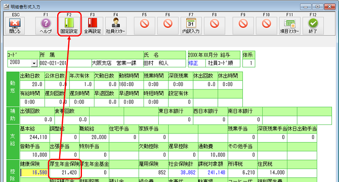 「厚生年金保険」にカーソルを移動して、F2[固定設定]をクリックしてください。