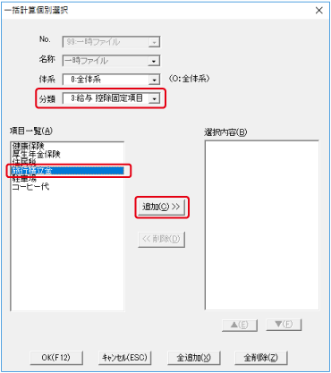 「項目一覧」に表示されている、該当項目をクリックし、[追加]をクリックしてください。