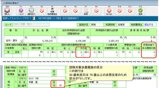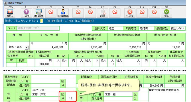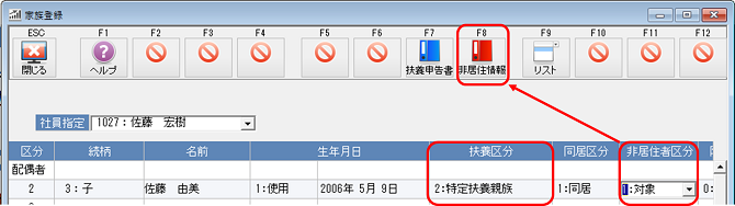 扶養区分や非居住者区分については[人事管理]- [家族登録]で確認してください。
