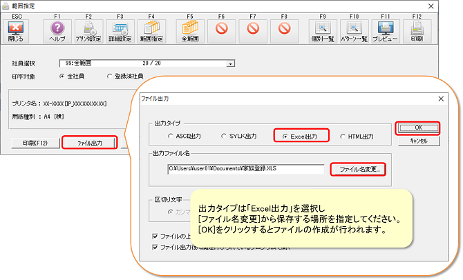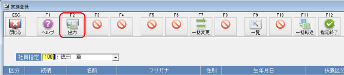[人事管理]- [家族登録]-F2[出力]をクリックしてください。