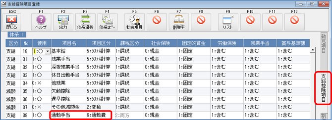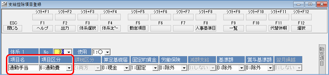 F9[一覧]から「通勤手当」の項目を選択してF12[決定]をクリックします。