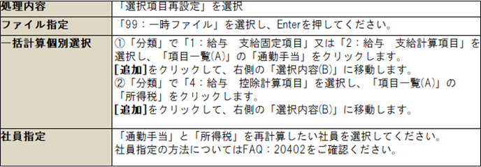 以下の手順で「通勤手当」と「所得税」の再計算を行ってください。