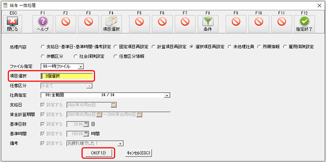 項目選択の欄が「2個選択」になっていることを確認して、[OK]をクリックしてください。