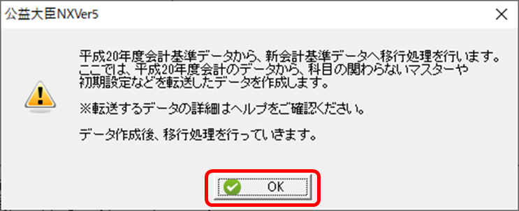 このFAQでは、「平成20年度会計基準向け勘定科目」をご使用している方が移行する場合の手順についてご説明します。